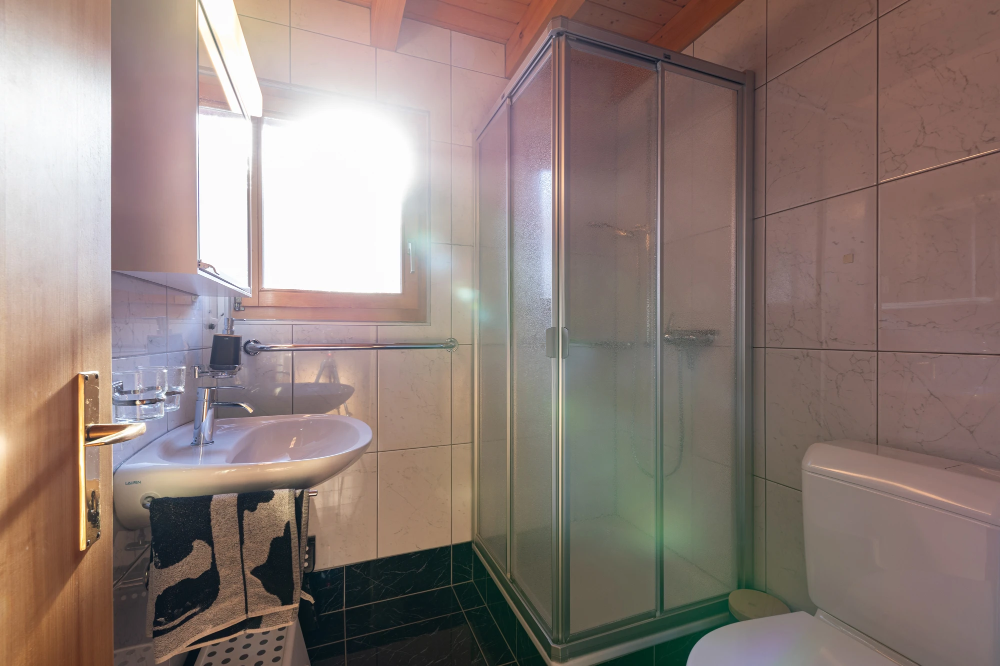 Salle d’eau avec lavabo, toilette et douche