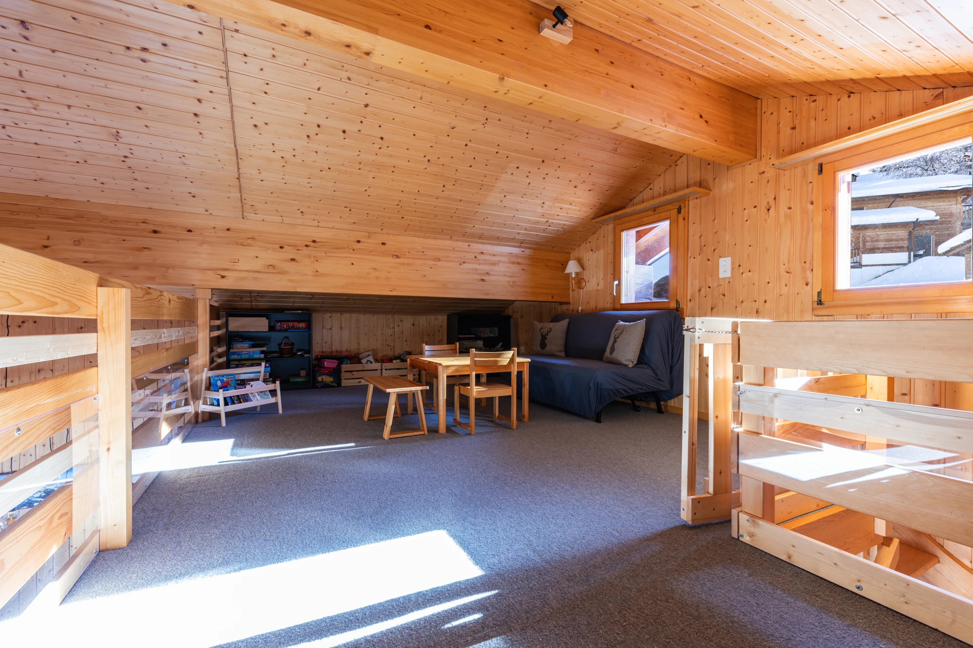 Une chambre avec deux lits 80×200 et un lit mezzanine